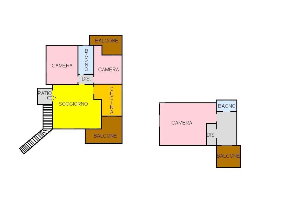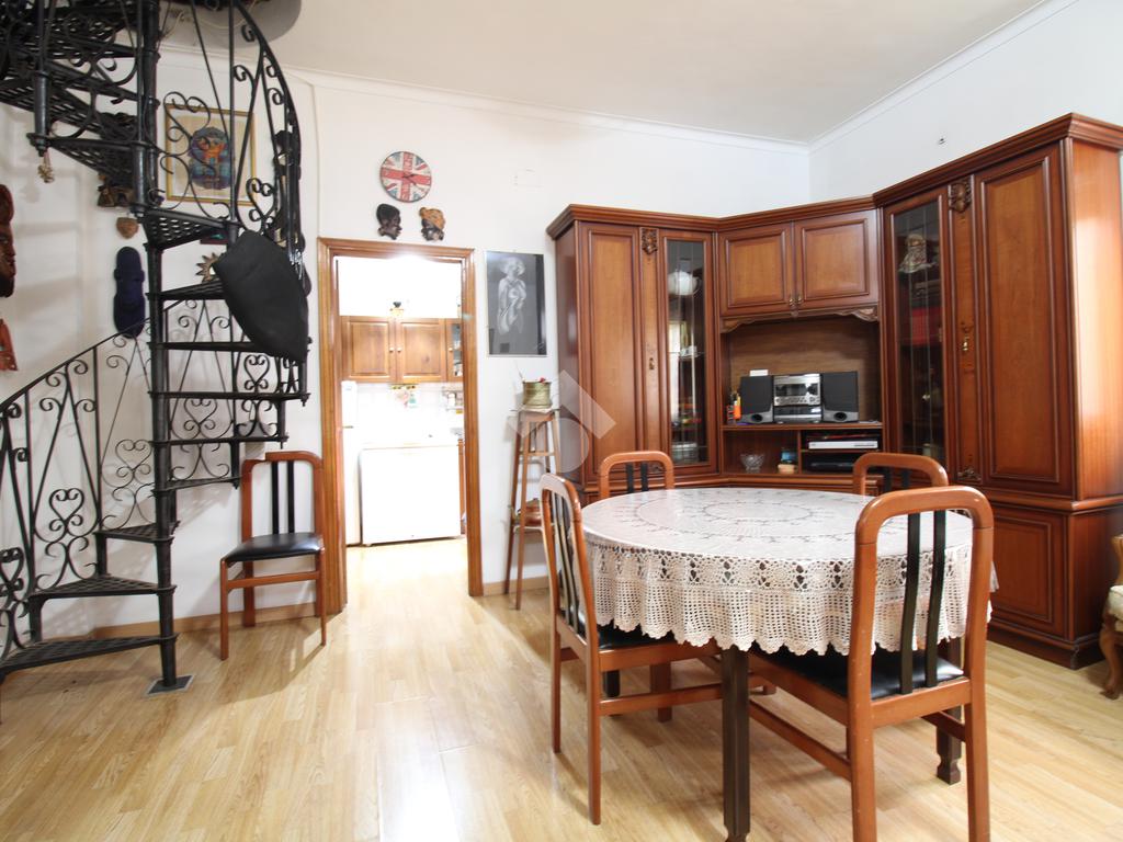 L'appartamento, è composto al primo piano da soggiorno con camino, cucinotto, due camere matrimoniali, un bagno con vasca e finestra, e due balconi. Al secondo piano, accedendo mediante una scala a chioccola, è composto da un disimpegno, una camera matrimoniale, un bagno con doccia e finestra, ed un balcone.